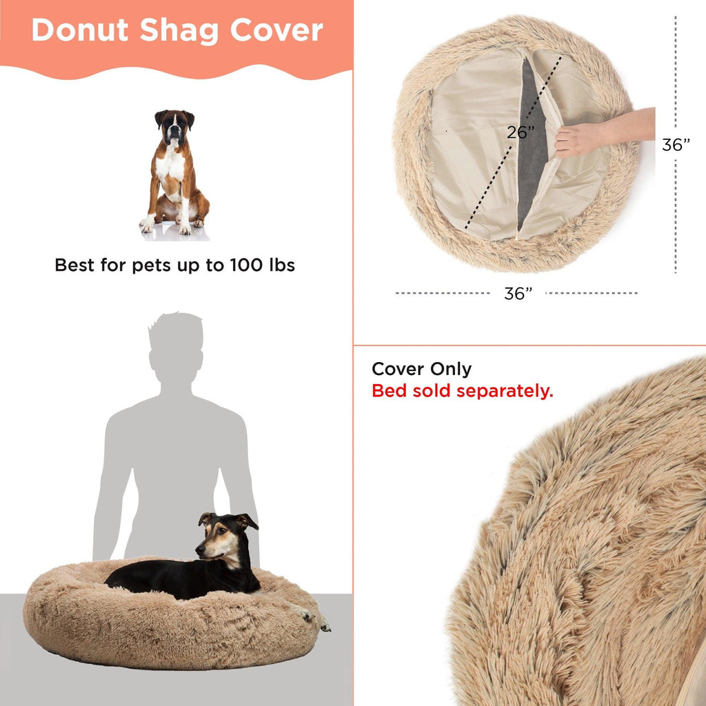 Replacement Shell Cover for The Original Calming Donut Dog Bed in Shag Fur - 36"x36"